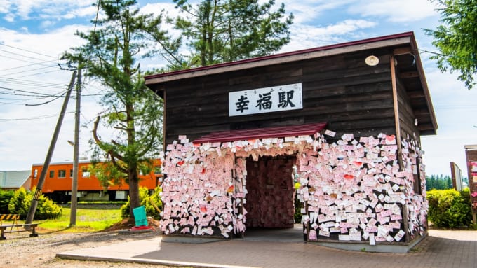 아이코쿠역과 마찬가지로 ‘사랑의 나라에서 행복으로’라는 문구로 오랫동안 사랑받아 온 행복역입니다. 목조 역사와 판자 형태의 플랫폼, 디젤 열차 2량이 당시 모습 그대로 전시되어 있습니다. 2013년 역사 리뉴얼에 맞춰 웨딩용 드레스 하우스가 마련되었고, 역사 서쪽에는 ‘행복의 광장’과 소형 분수 ‘사랑의 샘’이 새로 조성되었습니다. 또한 아이코쿠역과 함께 ‘연인의 성지’로 선정되어 있는데, 이곳은 비교적 커플 방문 비중이 높은 편입니다.