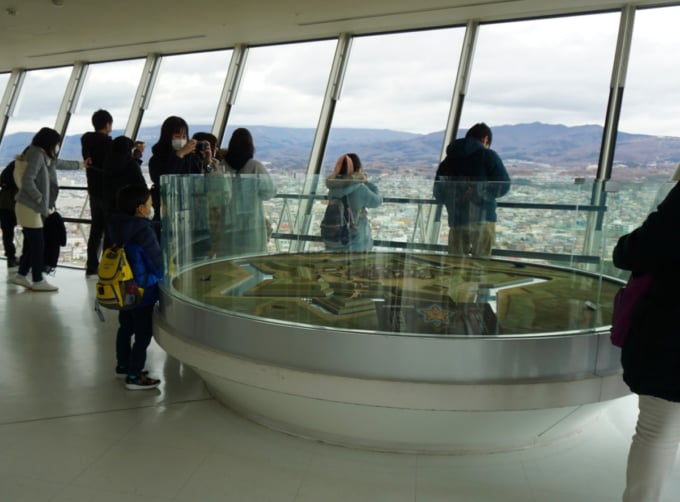 엘리베이터에서 내리면 그곳이 전망대 2층으로, 지상 약 90m에 해당하는 고료카쿠 타워의 최상층입니다.