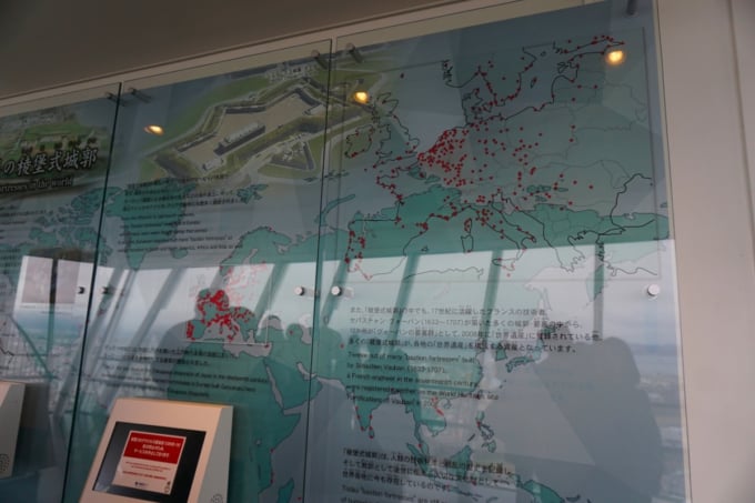 이 플로어 중앙부에는 ‘세계의 능보식 성곽(世界の稜堡式城郭)’을 소개하는 패널 전시가 마련되어 있습니다. 유럽에 이러한 성곽이 다수 존재한다는 점을 확인할 수 있습니다.