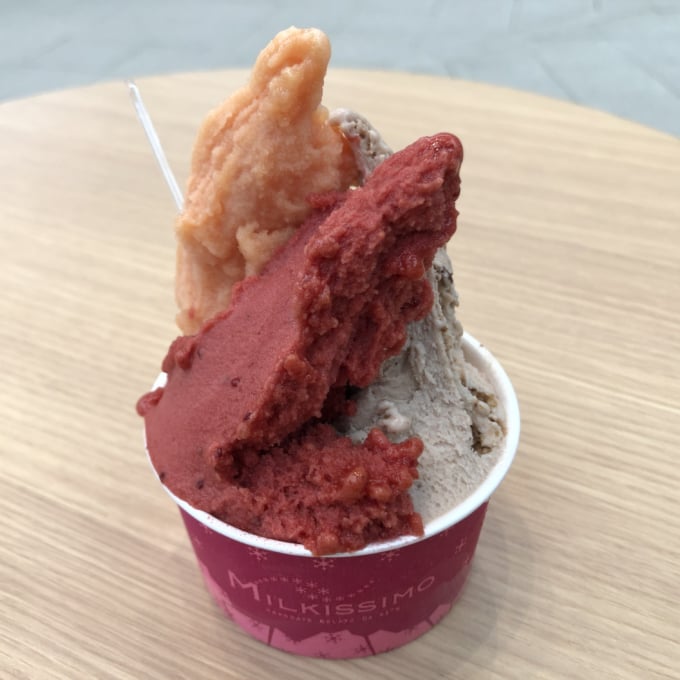 밀키시모 밀크, 하스캅 노르드, 이탈리아산 블러드 오렌지 등 홋카이도와 이탈리아의 풍미를 살린 젤라토를 즐길 수 있습니다.