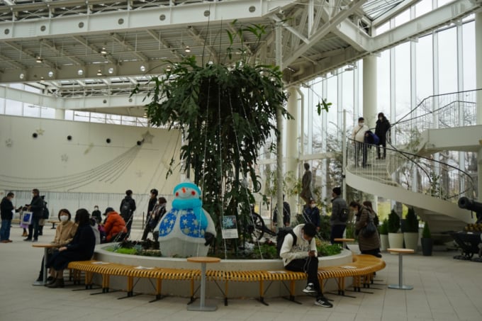 1층 티켓 카운터 안쪽에 위치한 아트리움은 자연광이 들어오는 개방형 공간입니다.
