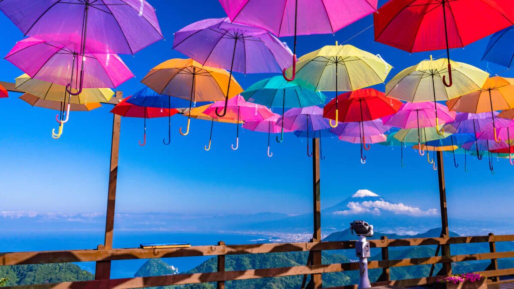 시즈오카현 이즈노쿠니시에 위치한 이즈 파노라마 파크(伊豆パノラマパーク)는 후지산과 스루가만을 동시에 조망할 수 있는 절경 명소로 알려져 있습니다.