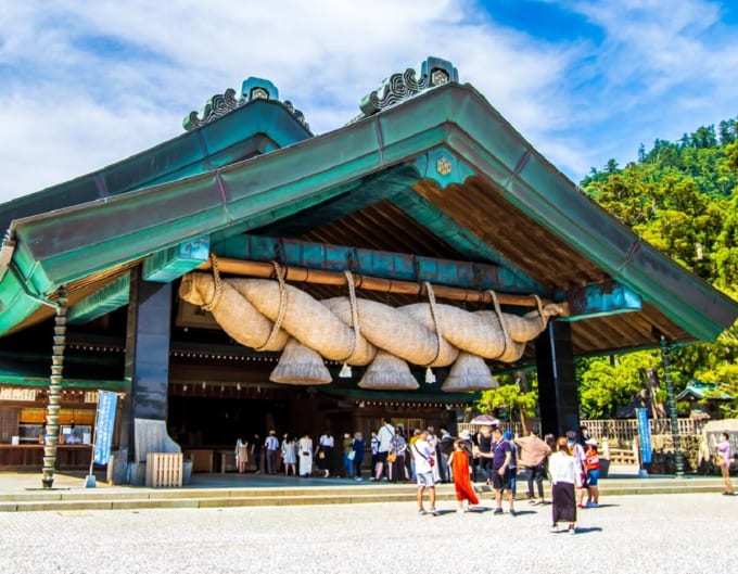 일본 최대 규모의 신사 건축물인 본전, 거대한 국기, 웅장한 오오시메나와(대형 시메나와) 등 볼거리가 풍부해 일본을 대표하는 성지 중 하나로 꼽힙니다.