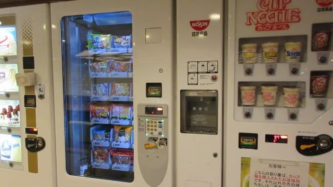 야간 운항이기 때문에 음식과 간식을 판매하는 자판기도 충실하게 갖춰져 있습니다. 선내에서 먹는 냉동식품이나 컵라면은 왠지 더 맛있게 느껴집니다.