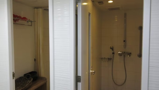 샤워실은 탈의 공간을 포함해 문이 있고 잠글 수 있어 안심하고 이용할 수 있습니다.