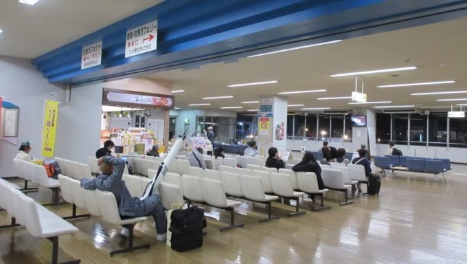 첫 번째 기항지는 고토 열도 최북단의 우쿠섬입니다. 도착 시간은 오전 4시 전으로, 아직 어둠이 남아 있습니다. 항구 주변에는 문을 연 가게가 없지만, 터미널 내에는 무료 휴게실이 마련되어 있습니다.