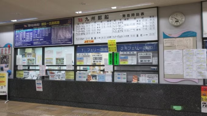 노모쇼센의 발권 창구는 이키·쓰시마 방면으로 향하는 규슈유센 창구와 나란히 위치해 있습니다.
