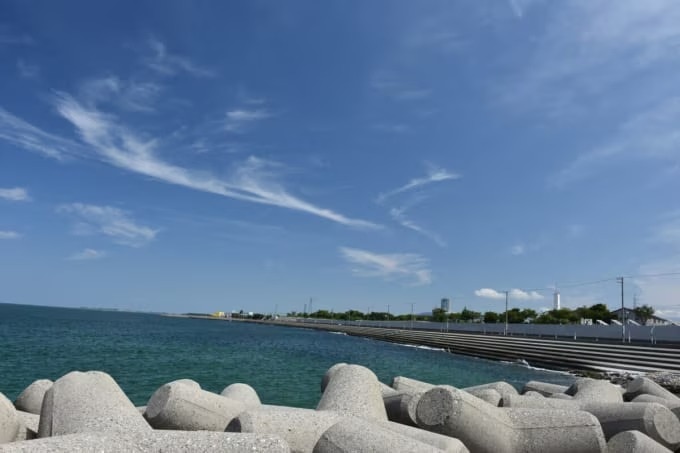 신키로 로드는 우오즈시 해안을 따라 이어지는 길입니다. 날씨가 좋은 날에는 드라이브와 사이클링을 즐기려는 방문객이 많이 찾습니다. 우오즈시는 일본에서도 신기루를 관측할 수 있는 대표적인 지역으로 알려져 있습니다.