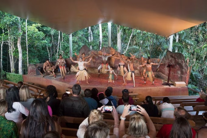 원형 극장에서는 파마기리족의 전통 댄스 쇼가 펼쳐집니다. 음악은 세계에서 가장 오래된 목관악기로 알려진 ‘디저리두(Didgeridoo)’로 연주됩니다. 춤에는 여러 종류가 있으며, 일본어 설명서도 제공되어 공연의 의미와 내용을 이해하며 관람하실 수 있습니다.
