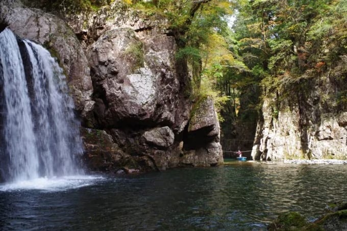 각 명소의 뛰어난 경관을 감상하며 하이킹을 즐기는 것이 가장 큰 매력이지만, 깎아지른 절벽 사이의 협곡을 나룻배로 유람하는 것도 좋습니다. 나룻배는 ‘구로부치 도선’과 ‘사루토비 도선’이 있으며, 특히 사루토비의 역동적인 경관을 가까이에서 볼 수 있고 ‘니다키 (二段滝)’까지 갈 수 있는 사루토비 도선을 이용하는 것을 권합니다.