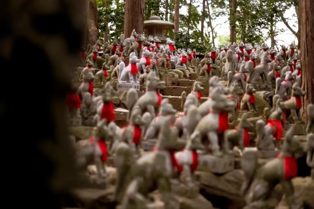 경내 안쪽에는 수많은 여우상을 모신 ‘영호총’이 있습니다. 원래는 봉납된 여우상만을 모시는 장소였지만, 현재는 참배객들이 소원이 이루어진 것에 대한 감사의 의미로 봉납한 다양한 크기의 여우상이 함께 모셔져 있습니다. 약 1,000여 기에 이르는 여우상이 모여 있는 모습은 매우 인상적이며, 도요카와 이나리(豊川稲荷)를 방문했다면 꼭 들러볼 만한 장소입니다.