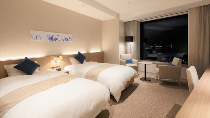 객실은 총 553실로, 객실 타입은 총 10종류가 마련되어 있습니다. 모든 객실에서 무료 Wi-Fi를 이용할 수 있으며 TV·냉장고·음이온 드라이어 등 다양한 객실 설비가 갖춰져 있습니다. 어메니티도 충실하게 준비되어 있으며, 와인 오프너나 손톱깎이 등 다양한 대여 비품도 이용할 수 있습니다.
