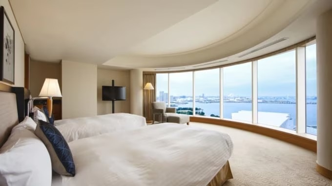 객실은 총 593실로 구성되어 있으며, 슈페리어 룸·디럭스 룸·그랜드 디럭스 룸·비즈니스 룸의 4가지 객실 타입과 4종류의 스위트룸이 마련되어 있습니다. 모든 객실에서 무료 Wi-Fi와 유선 LAN을 이용할 수 있습니다. 객실 전망은 베이뷰 또는 시티뷰 중 선택할 수 있으며, 미나토미라이의 아름다운 풍경을 감상하며 여유로운 숙박을 즐길 수 있습니다.