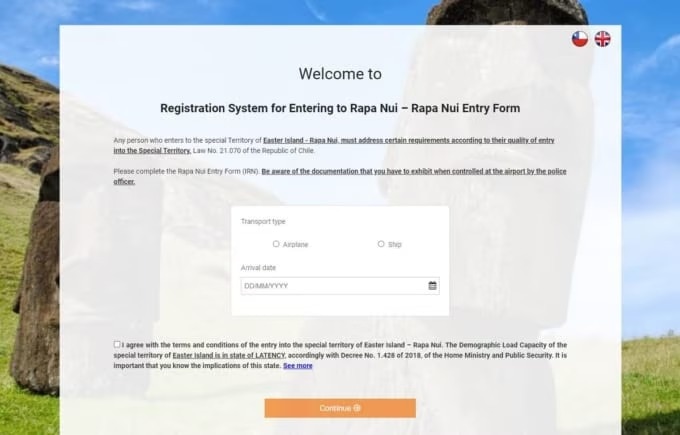 이스터섬 입도 신청은 여행 예정일 약 3주 전부터 가능합니다. 아래의 공식 입도 신청 사이트에서 미리 신청 절차를 진행하는 것이 좋습니다.