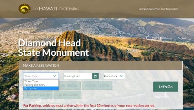 다이아몬드 헤드는 2022년 5월 12일부터 온라인 사전 예약 시스템이 도입되었습니다. 미리 예약하고 티켓을 구매하지 않으면 다이아몬드 헤드에 입장할 수 없습니다.