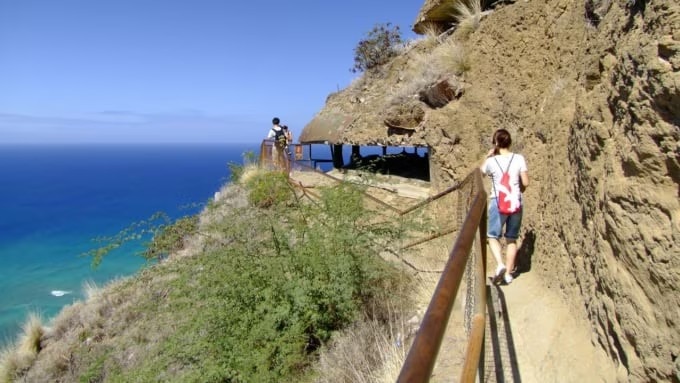 다이아몬드 헤드 정상에서 기념사진을 찍기 위한 카메라도 준비해 두는 것이 좋습니다. 낮 시간에는 햇빛이 강하고 기온이 높아지는 경우가 많기 때문에 비교적 시원한 이른 아침이나 저녁 시간대에 등산하는 것을 권합니다.